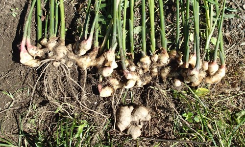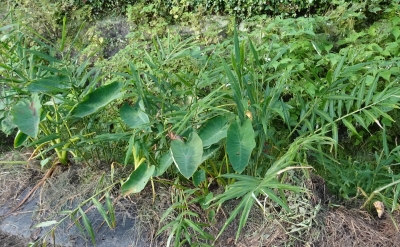 この何年か、さといもとしょうがを混植(さといもの株間にしょうがを植え、さといもの日陰でしょうがを栽培)しています。
